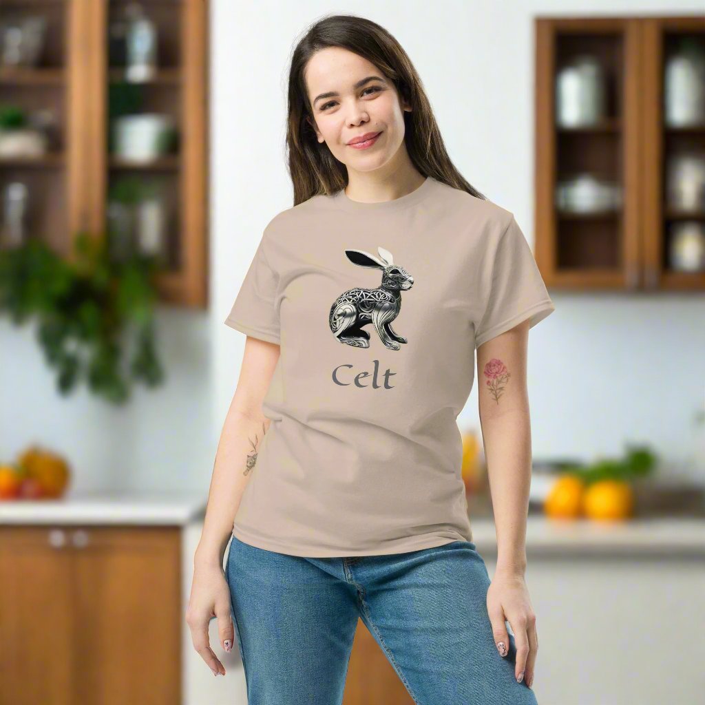 This Celtic hare T-shirt announces your proud and ancient heritage and the extraordinary "Insular" style of the Celts. If you have Celtic ancestry from Scotland, Ireland, Wales, Manx, and Brittany then the Celtic series is designed for you.