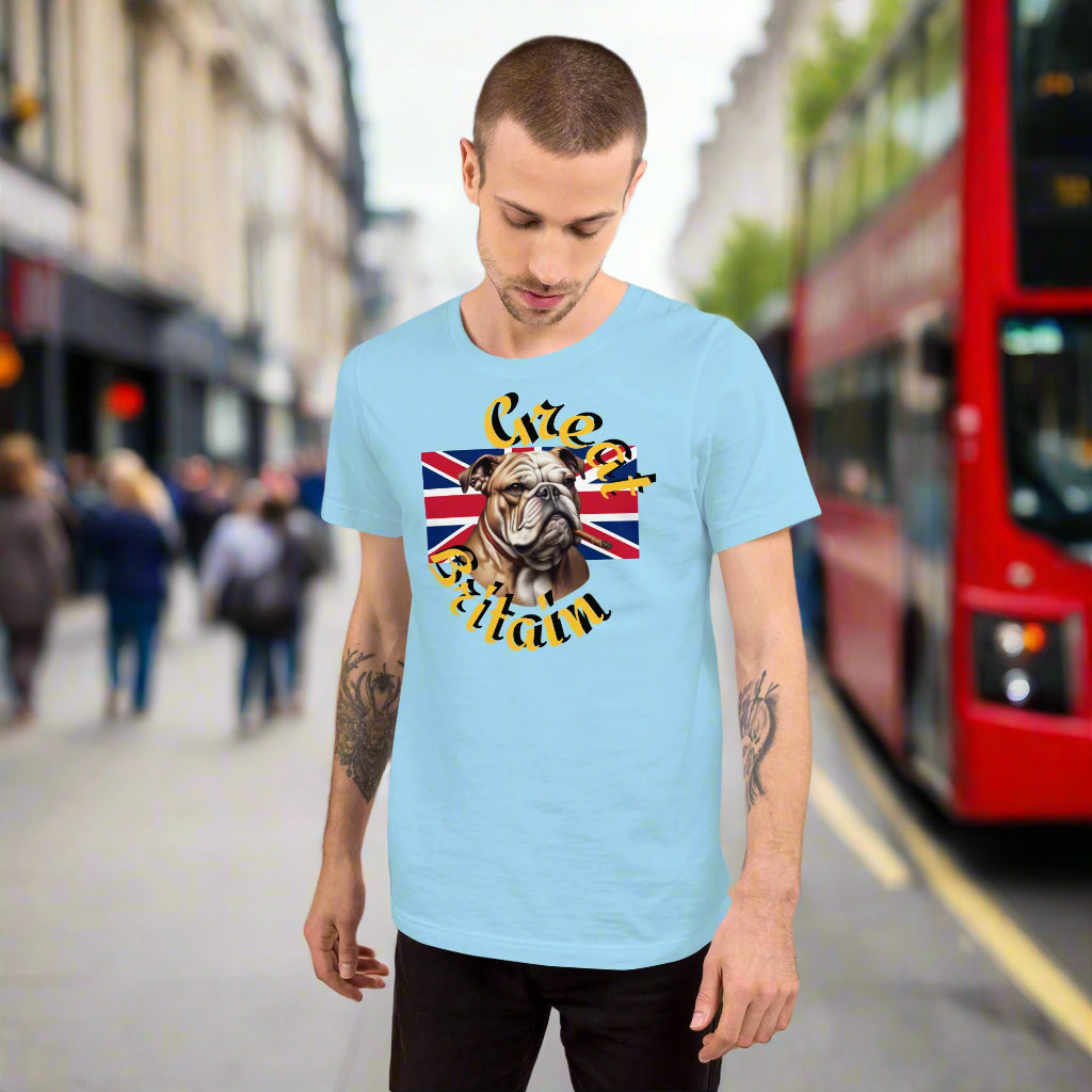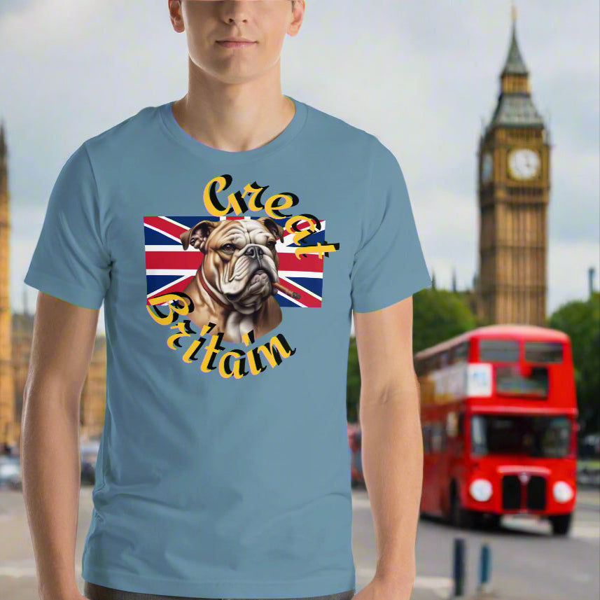 Show your British Pride with this classic bull dog, and do so while being comfortable in a soft cotton T-Shirt.