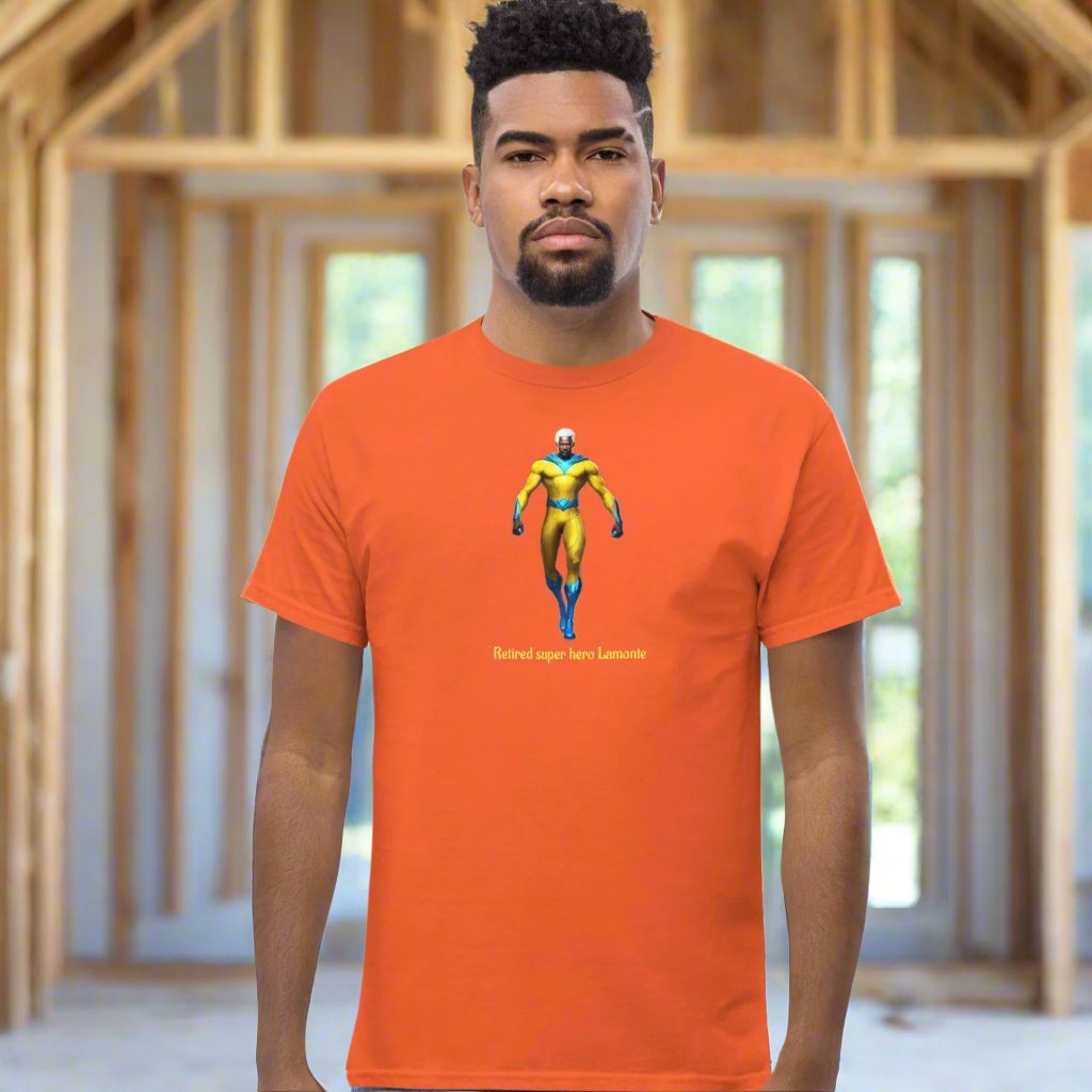 Printed on a 100% robust cotton unisex classic tee he will help you land a more structured look. The T-shirt sits nicely and maintains sharp lines around the edges.