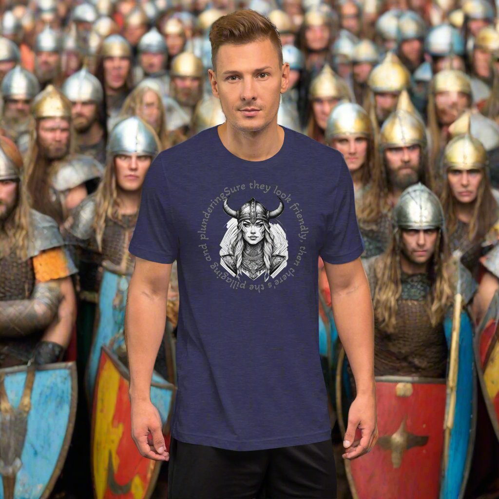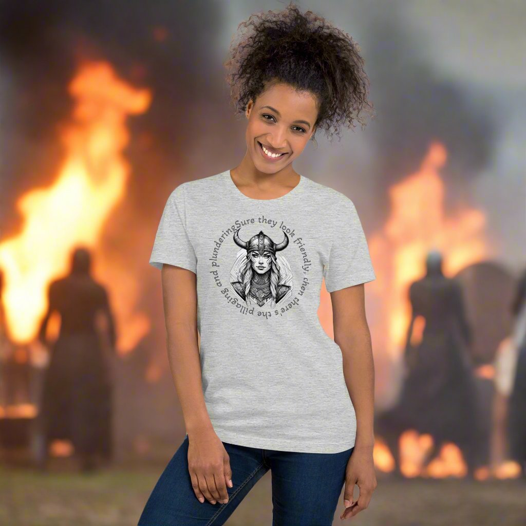 A T-Shirt that is soft and lightweight, with the right amount of stretch. It's comfortable and flattering for all when running from vikings.