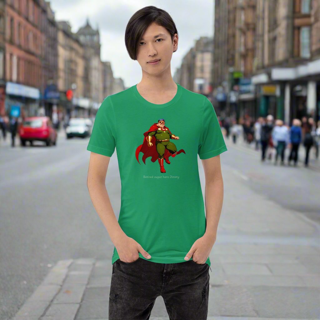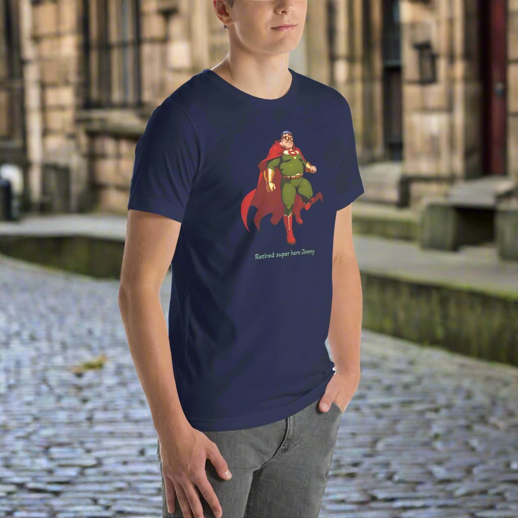 Retired super hero Jimmy. Unisex t-shirt