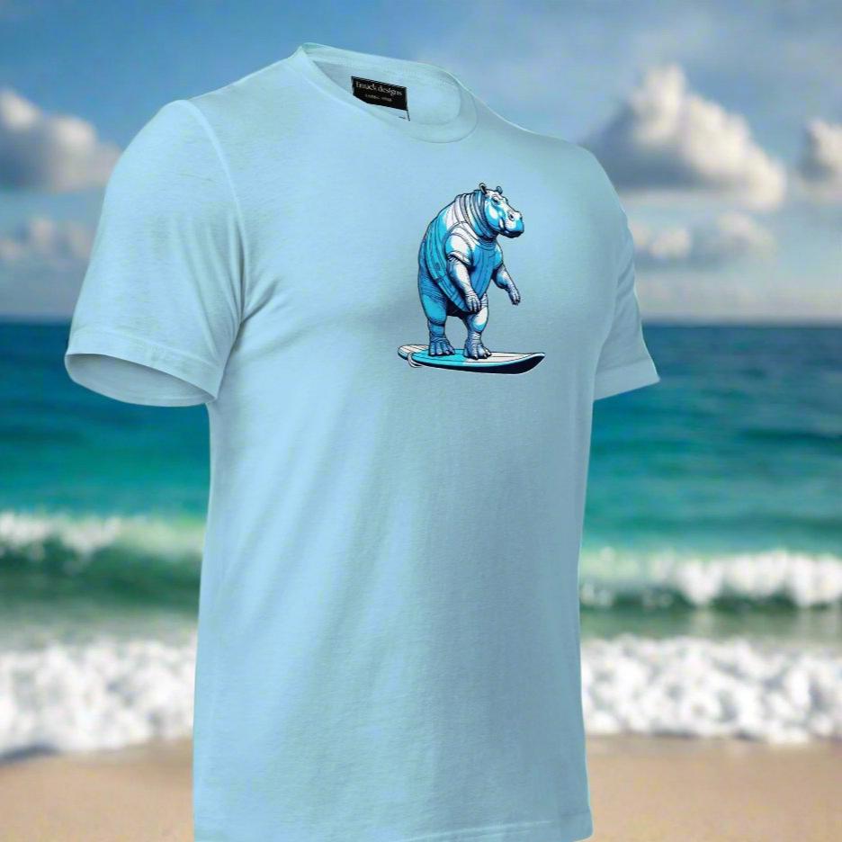 Blue surfing Hippo, Unisex t-shirt