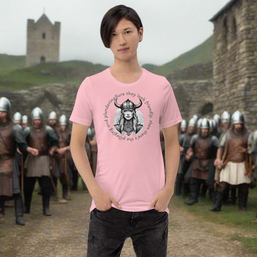 A T-Shirt that is soft and lightweight, with the right amount of stretch. It's comfortable and flattering for all when running from vikings.