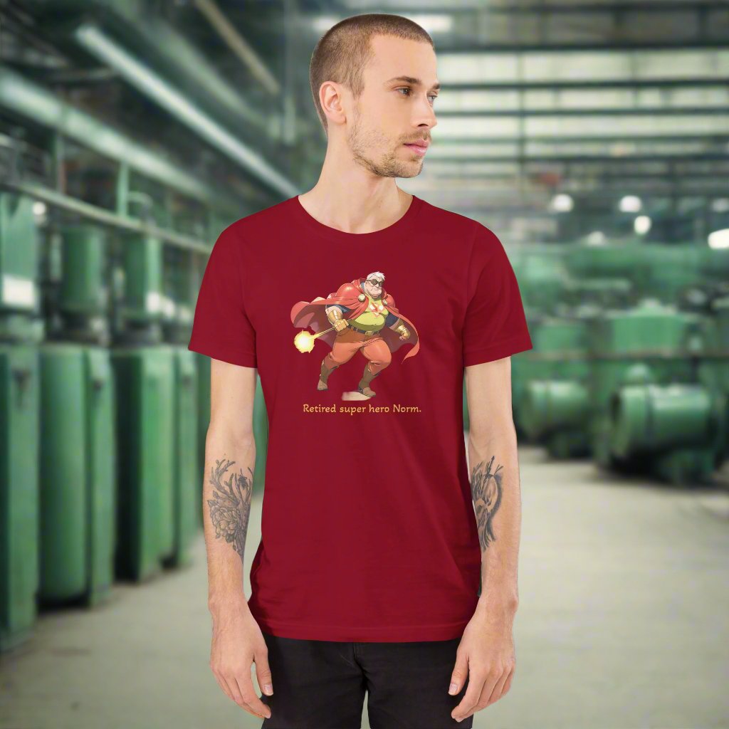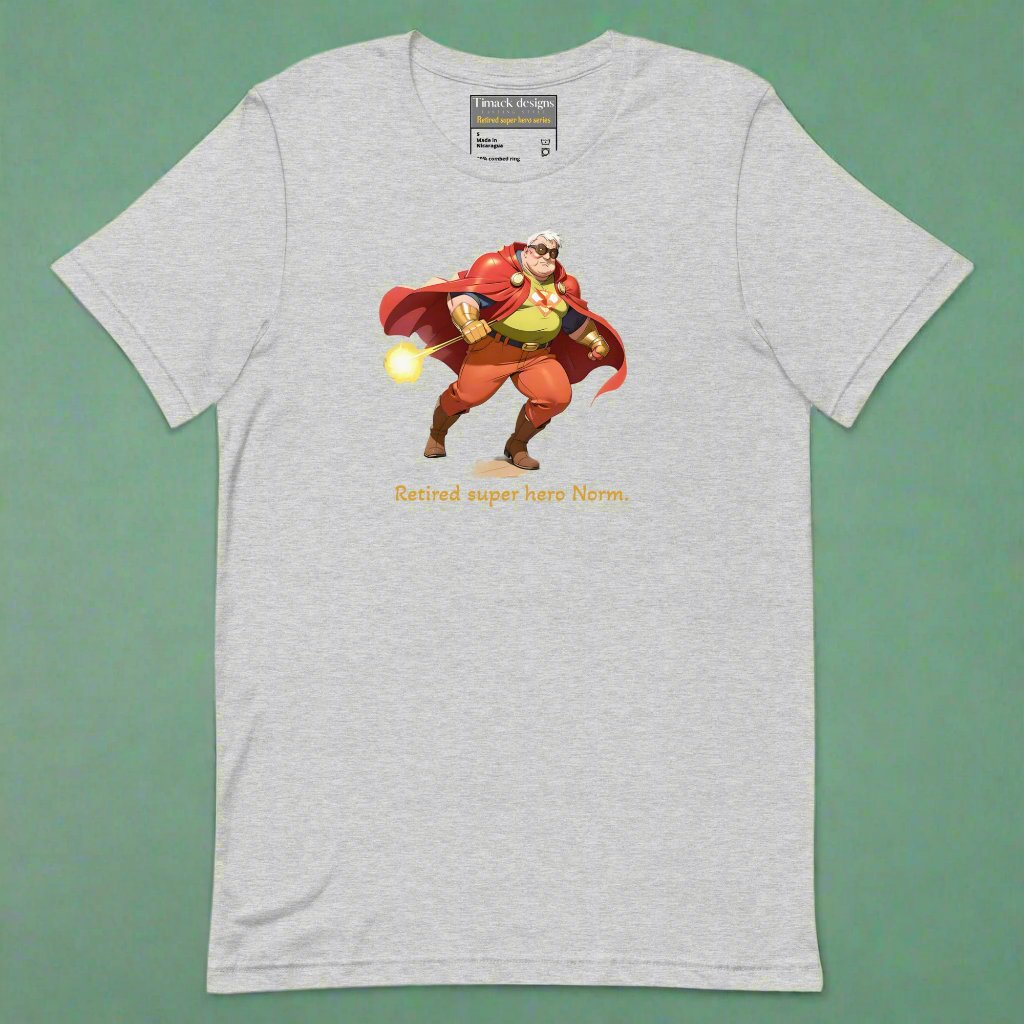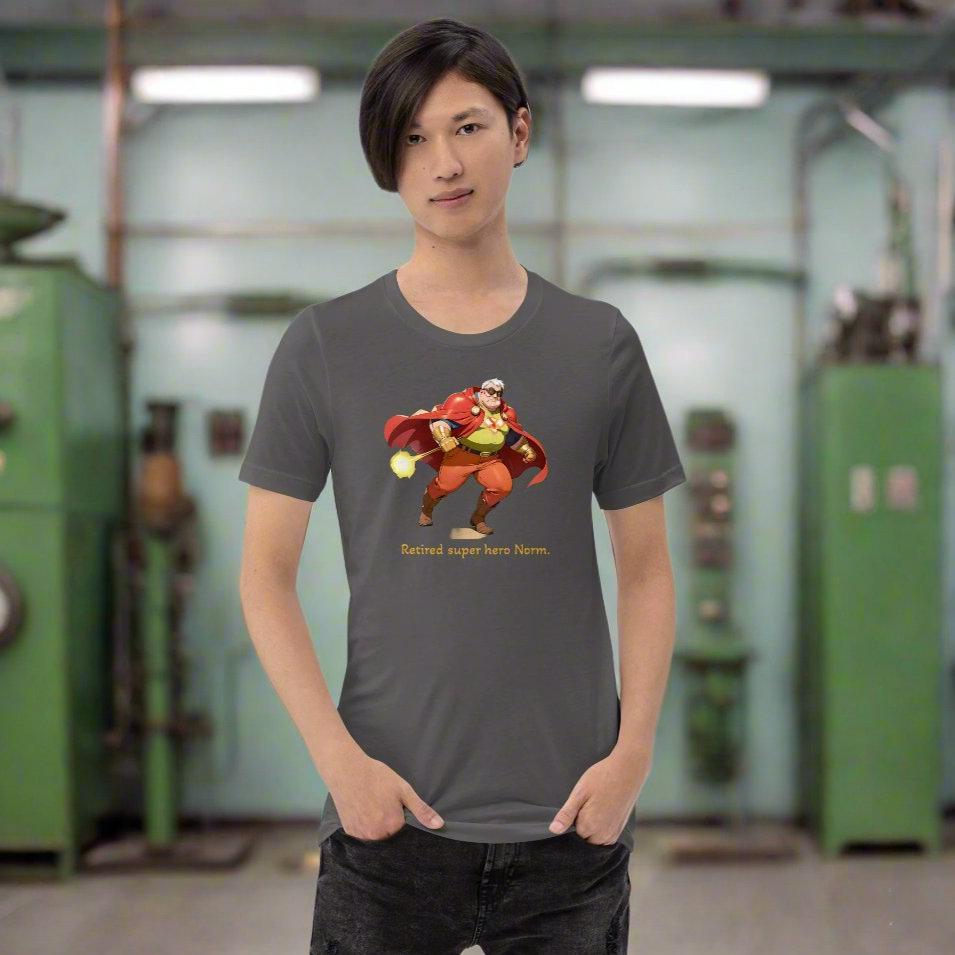 This t-shirt is one more in the retired super hero series. It feels soft and lightweight, and unlike retired super hero "Norm" it stretches. It's comfortable and flattering for all.